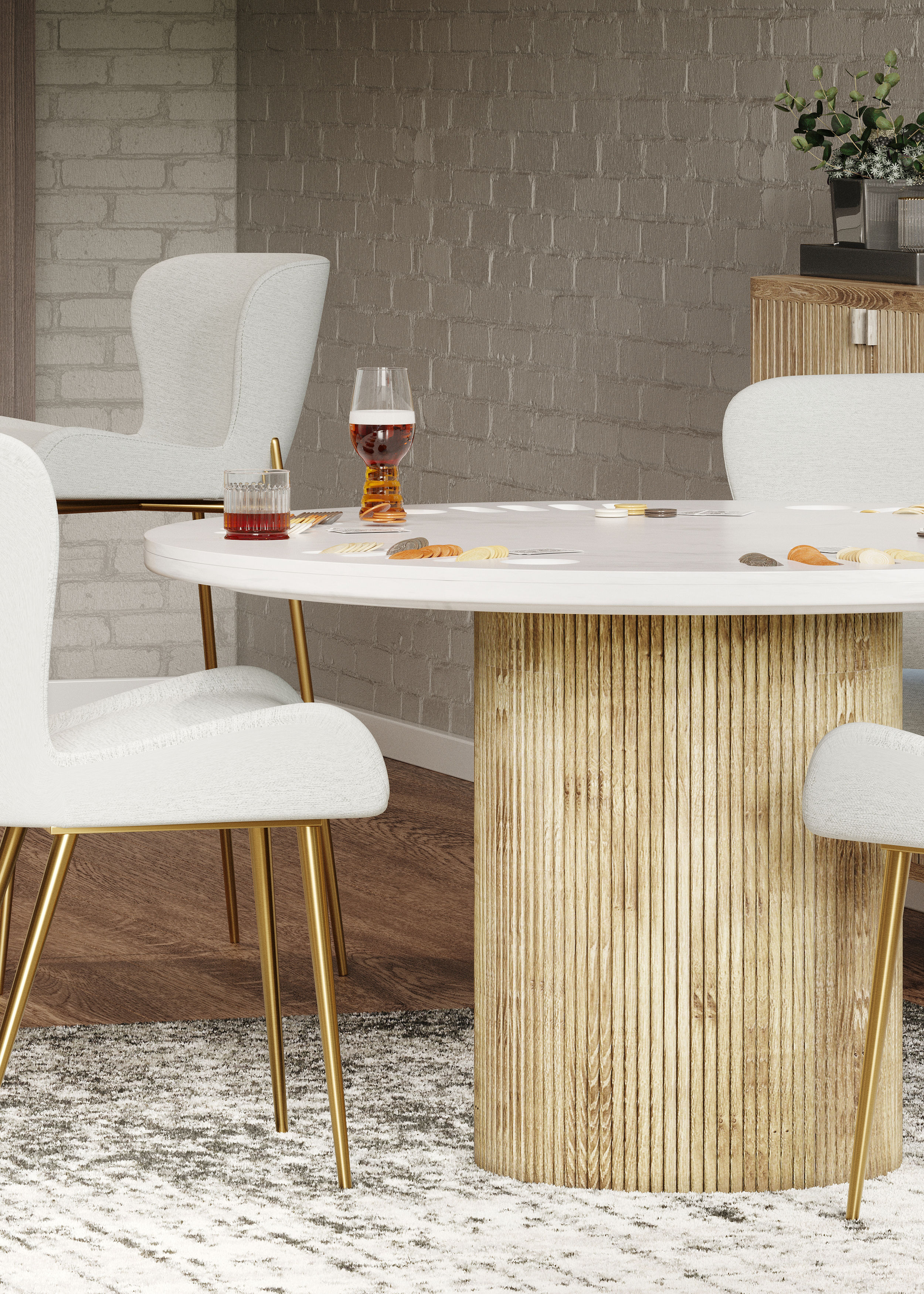 The Campbell Dining Chair brings refined character and understated elegance to your dining space. With its graceful curves, warm tones, and durable construction, it’s designed to elevate everyday meals and special gatherings alike.
